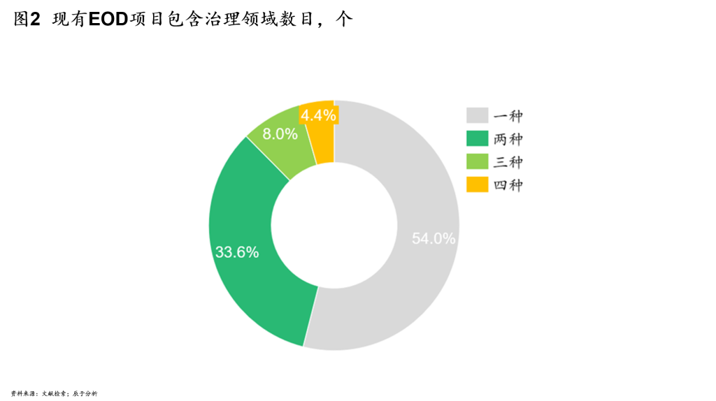 在治理领域数目方面,将近半数的项目都会包含多种生态治理内容,这也充分体现了EOD项目在综合解决生态治理上的优势(见图2)。