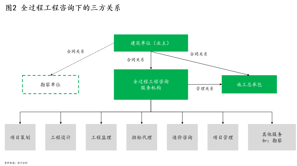 不过,在国内全过程工程咨询当前发展还不够成熟的情况下,理想的三方关系还没有广泛形成,这其中有政策的原因、供给端的原因以及需求端的原因。