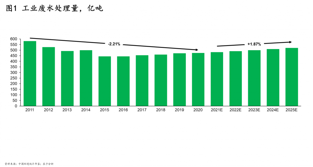 驱动力一:我国工业废水处理量将以1.87%的复合增速缓慢增长