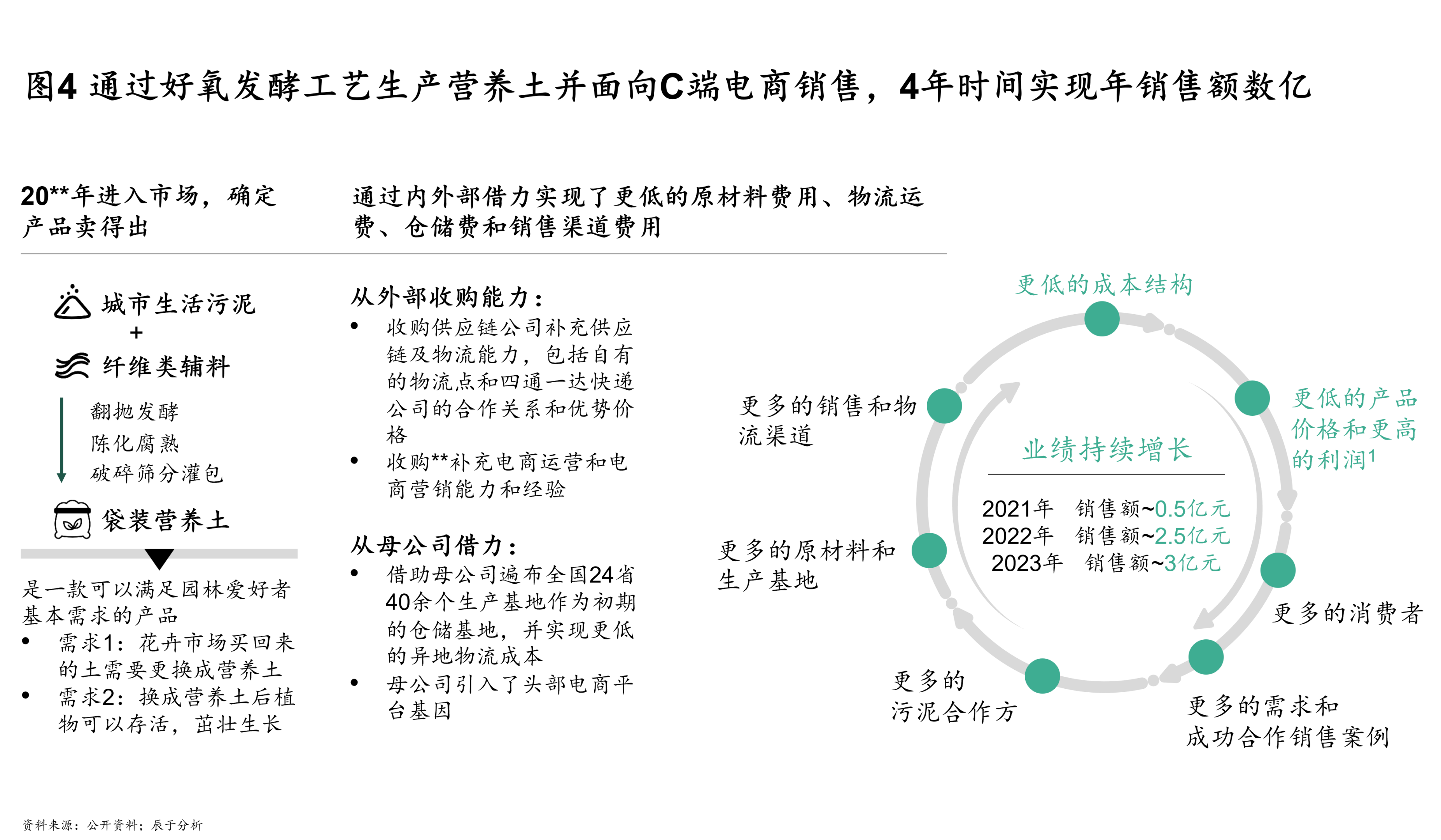 怎么做到的?它收购了供应链公司来补物流能力,拿下了主流快递公司的协议价;又收购了电商运营公司来补线上销售能力;再借助母公司在全国二十多个省的数十个生产基地作为仓储网络,把异地物流成本压到了最低。污泥对它来说,更像是低成本获取原料的一个入口,真正的护城河建在仓储、物流和电商渠道上。