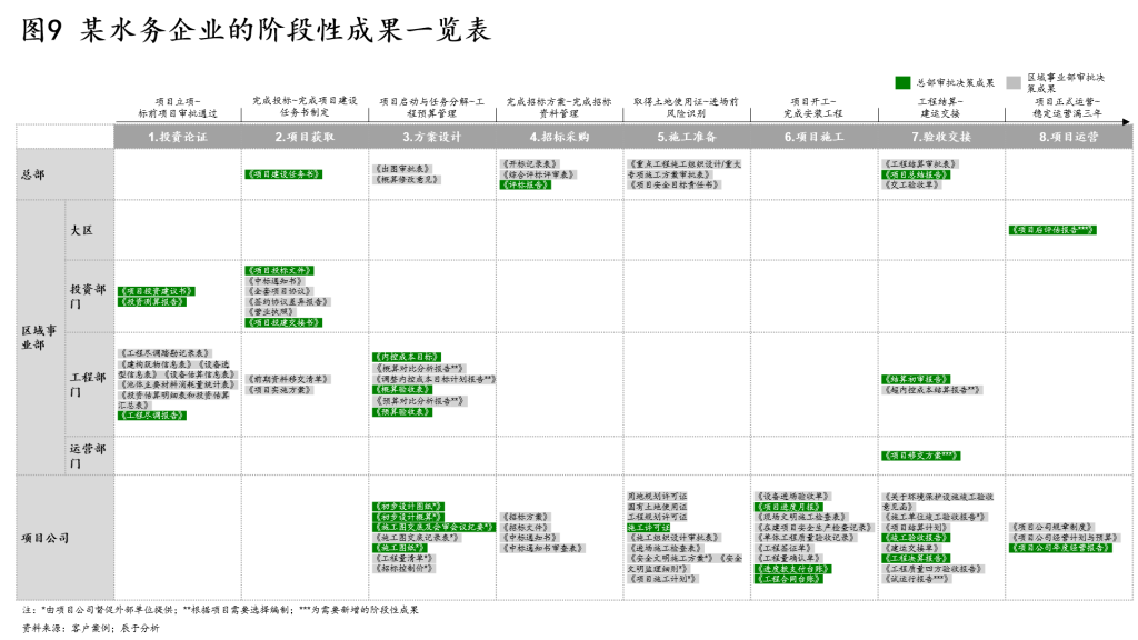 “满足下一个活动的需要”是方方面面的,最重要的就是质量要求,一些环保企业在这些方面的积累不足,例如对可研的质量要求缺失,产生了很多参差不齐、不标准的可研成果,对后期项目控制预算的确定、项目后评价等工作都会带来许多问题(见图8)。