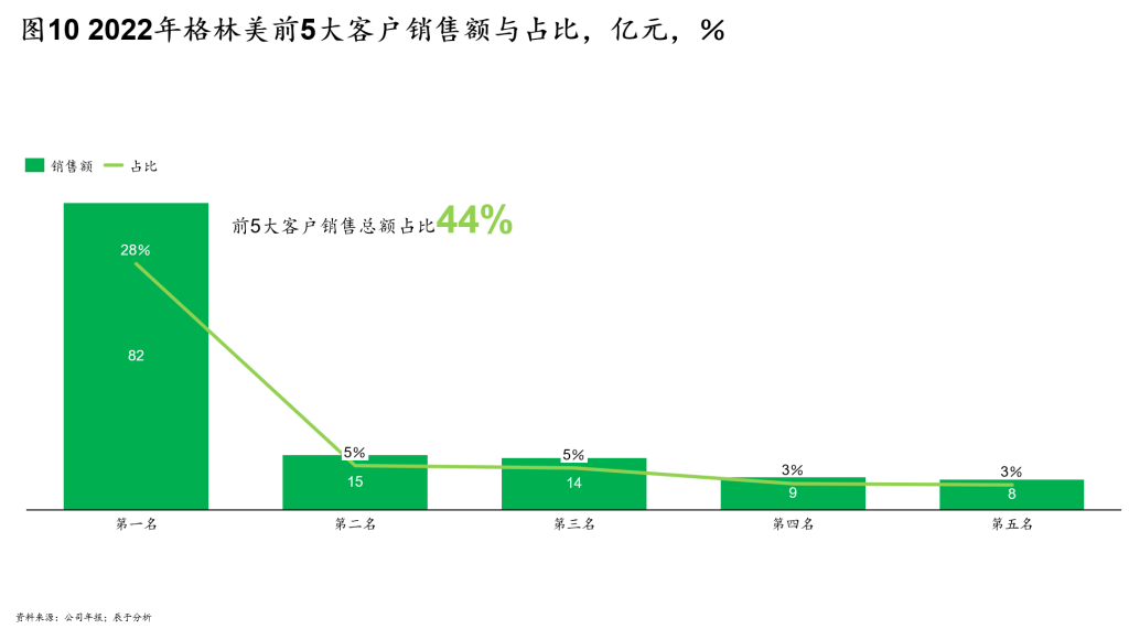 一方面,格林美持续做深、做透大客户市场,2022年的前5大客户销售总额128亿元,占比44%(见图10);同时大力开发新客户,提前锁定订单,例如格林美和厦钨新能源于2022年7月共同签订了产品合作开发协议,根据该协议,格林美将进行新一代前驱体产品的设计开发等工作,2023年-2027年向厦钨新能源合计供应45.5万吨到54万吨三元前驱体产品,订单的价格高达729亿元。据了解,与厦钨新能源签署合作协议,有利于不断夯实合作双方在全球新能源产业链的核心地位,也有利于公司实现2026年前驱体销量50万吨的远景目标,提升公司在全球新能源行业的影响力。